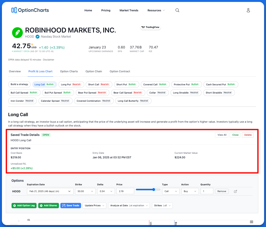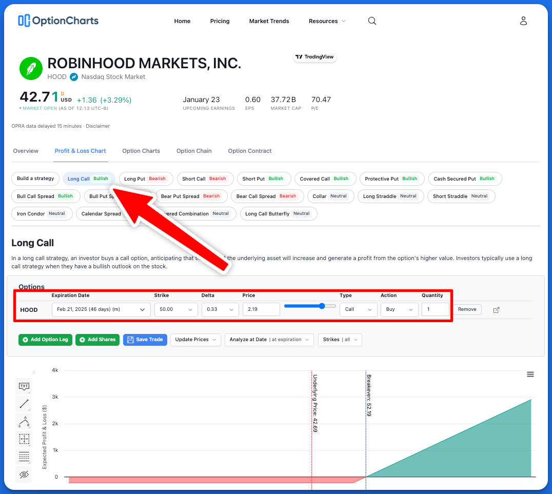 Go crazy! But for now we'll just name this one "HOOD Long Call". Riveting, isn't it?