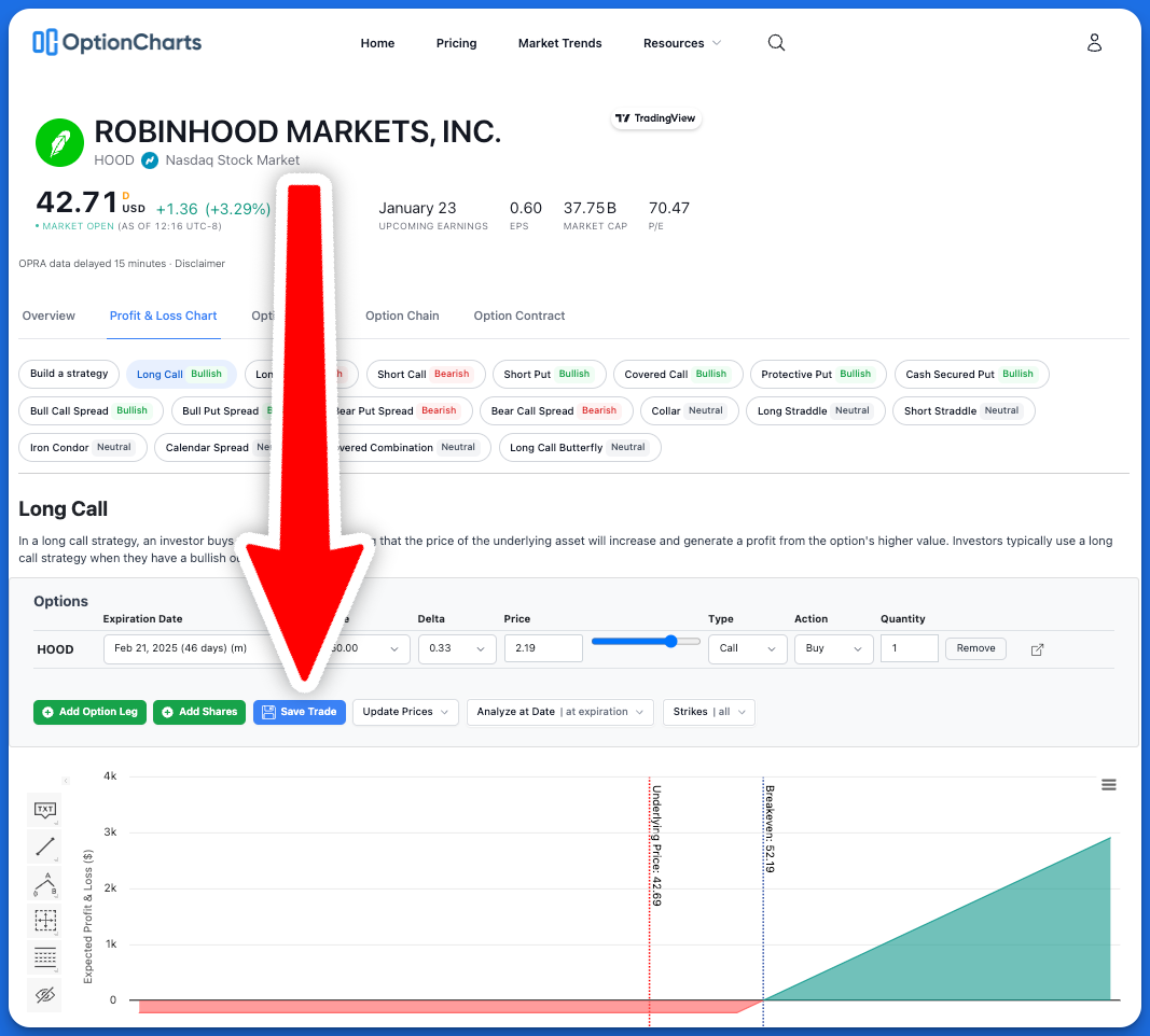 You're about to bust out your pen and paper or open your favorite Excel sheet, but at that moment you learned that OptionCharts just released the Saving Trades feature.